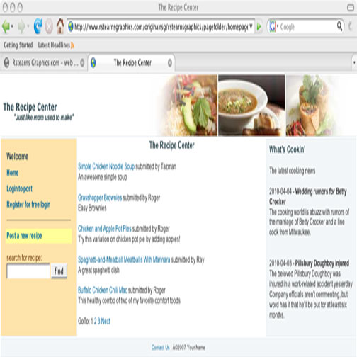 Rstearns Graphics has gained experience with some of these critical internet programming languages that are the very backbone of the internet in the creation of these interactive web sites, "The Recipe Center" and "The Food Store" using the AMP server model (Apache, MySQL and PHP).